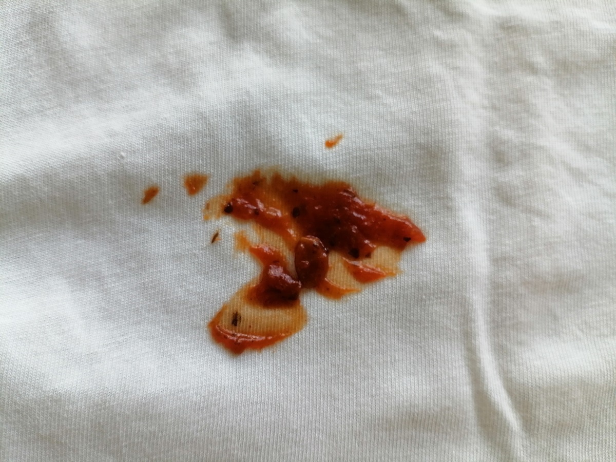 1. Соль и холодная вода (для томатных соусов): Посыпьте пятно солью — она поможет впитать лишнюю влагу. Затем, аккуратно, чтобы не дать грязи распространиться, промойте под холодной водой.