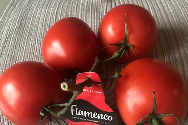 Фламенко – это гибридный сорт, отличающийся высокой продуктивностью и стабильным урожаем. Кусты достигают высоты от 150 до 180 сантиметров и имеют средние, зелёные листья. Каждый куст может дать до семи кистей с 5-6 плодами в каждой, так что вы сможете собрать внушительный урожай.