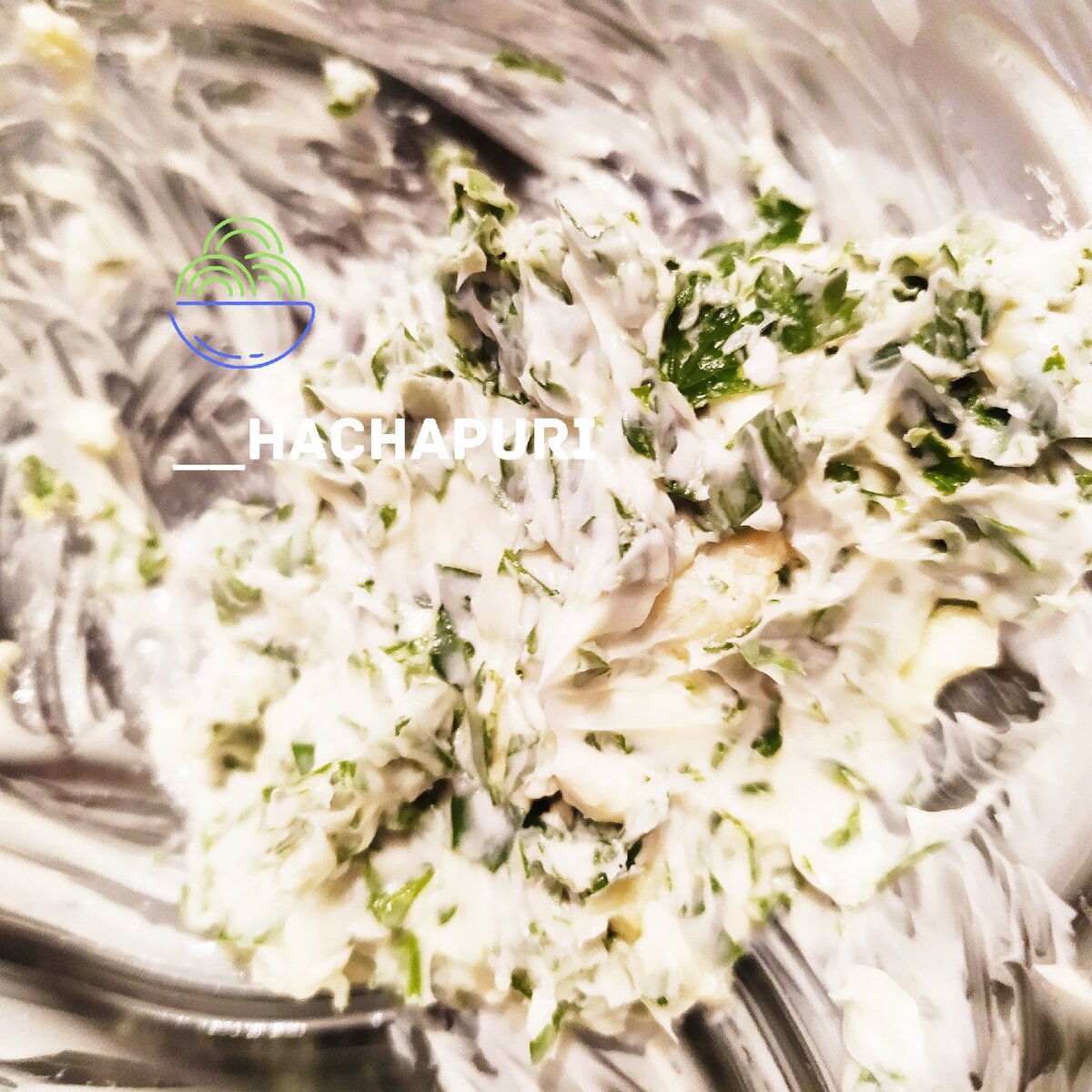 Кальмары и чеснок нарезаются мелкими кусочками, которые затем смешиваются с маслом, сахаром и чесноком. В зависимости от пожеланий, можно добавить соевый соус или красный перец. Как и в предыдущем рецепте, массу рекомендовано сформировать в колбаску и убрать в холодильник.