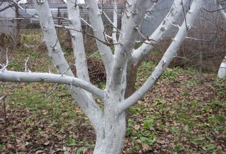 С осени важно побелить стволы и основные ветви плодовых деревьев. Это поможет избежать солнечных ожогов и защитит от грызунов. Для побелки можно использовать известковую пасту с добавлением креолина или сапропеля. Более зрелые деревья с жесткой корой также требуют защиты от зимних морозов, поэтому рекомендуется использовать известково-глиняную смесь, приготовленную из 2-3 кг глины и воды.