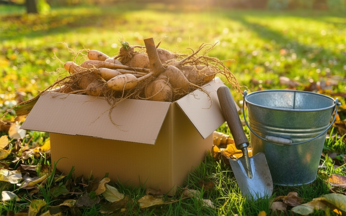 Хранить клубни лучше всего в деревянных ящиках, но для удобства можно использовать крепкие картонные коробки из-под фруктов. На дно нужно положить слой сухого мха или торфа, а клубни укладывать так, чтобы они не касались друг друга. Завершите упаковку газетами для защиты от света и свежего воздуха. Храните в прохладном месте при температуре от +3 до +7 °C, чтобы избежать замерзания.