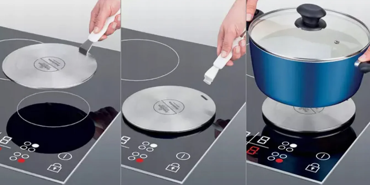 - Индукционный адаптер: Это специальный диск, который кладется на конфорку и нагревается, передавая тепло кастрюле. Такой подход позволяет использовать любую посуду, но нагрев происходит медленнее.