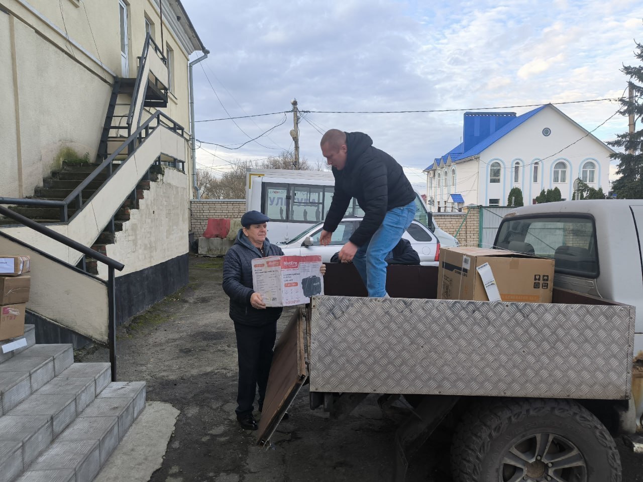 Два региональных Департамента (IT и финансов) и МФЦ объединили усилия, чтобы собрать стройматериалы и инструменты (доски, брус, пароизоляцию, саморезы, бензопилу, шуруповерт и др.) Еще в груз вошли квадрокоптер и дрон-детектор.