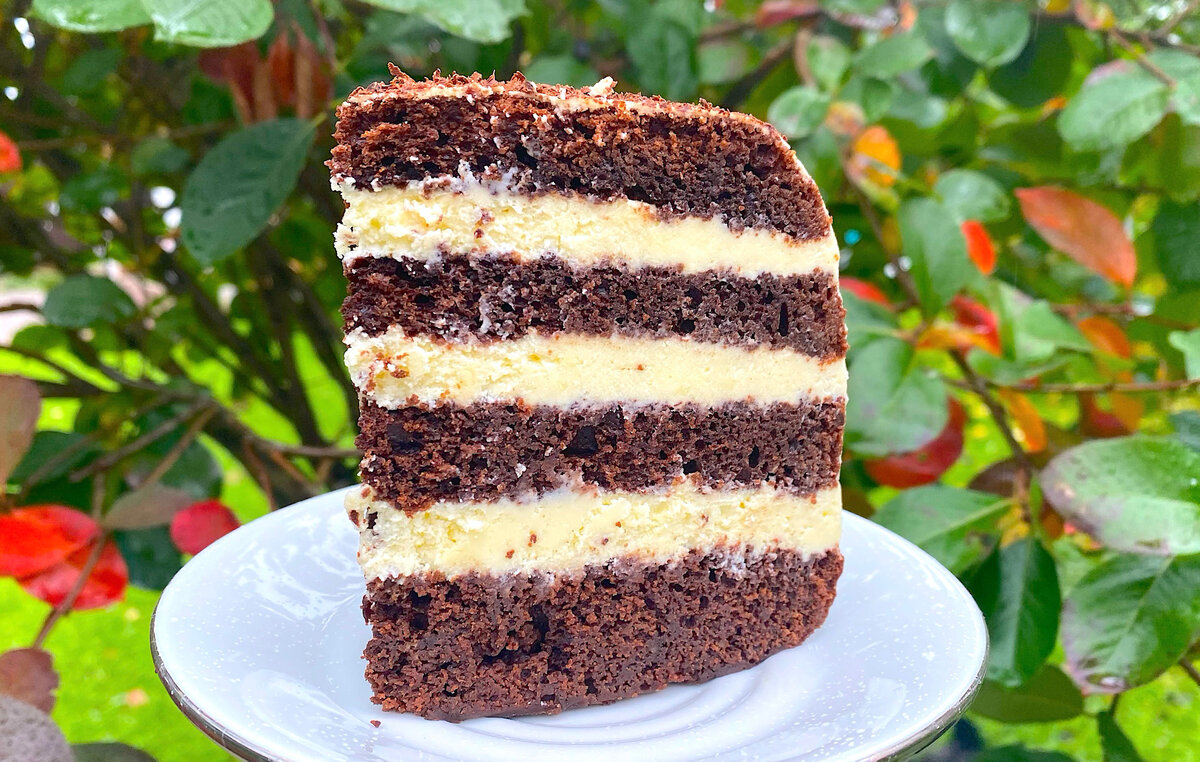 Для украшения и создания гладкого вкусового контраста рекомендуем использовать крем из творожного сыра, сгущенного молока и ванильного сахара. Пропитывать торт не обязательно, благодаря его влажности он сам по себе будет достаточно сочным.