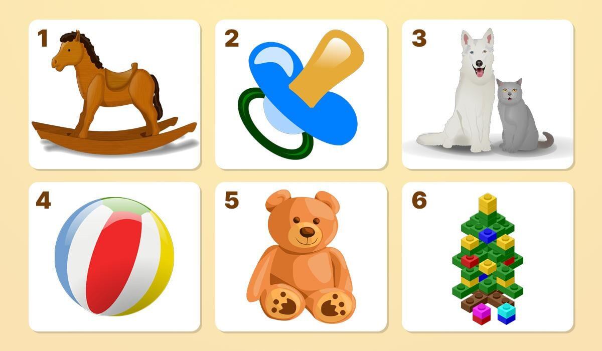 Каждая игрушка на картинке представляет собой своеобразный символ, вбирающий в себя воспоминания и эмоции, связанные с детством. Возможные варианты выбора: