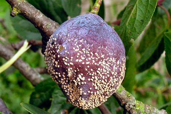 - Болезнь сначала поражает цветы, побеги, а затем переходит на плоды. На сливах можно заметить очаги гнили, которые быстро увеличиваются в размерах.