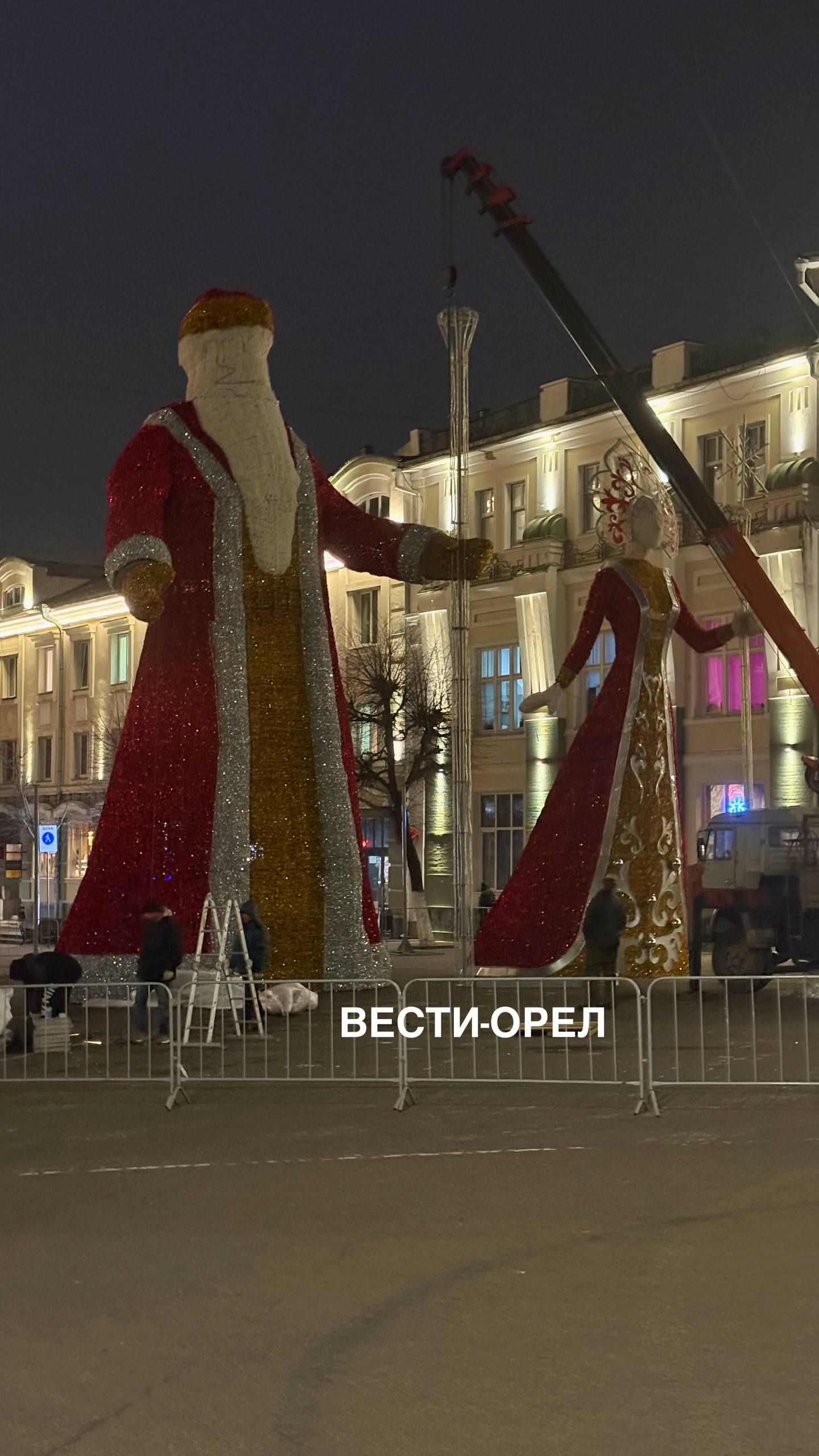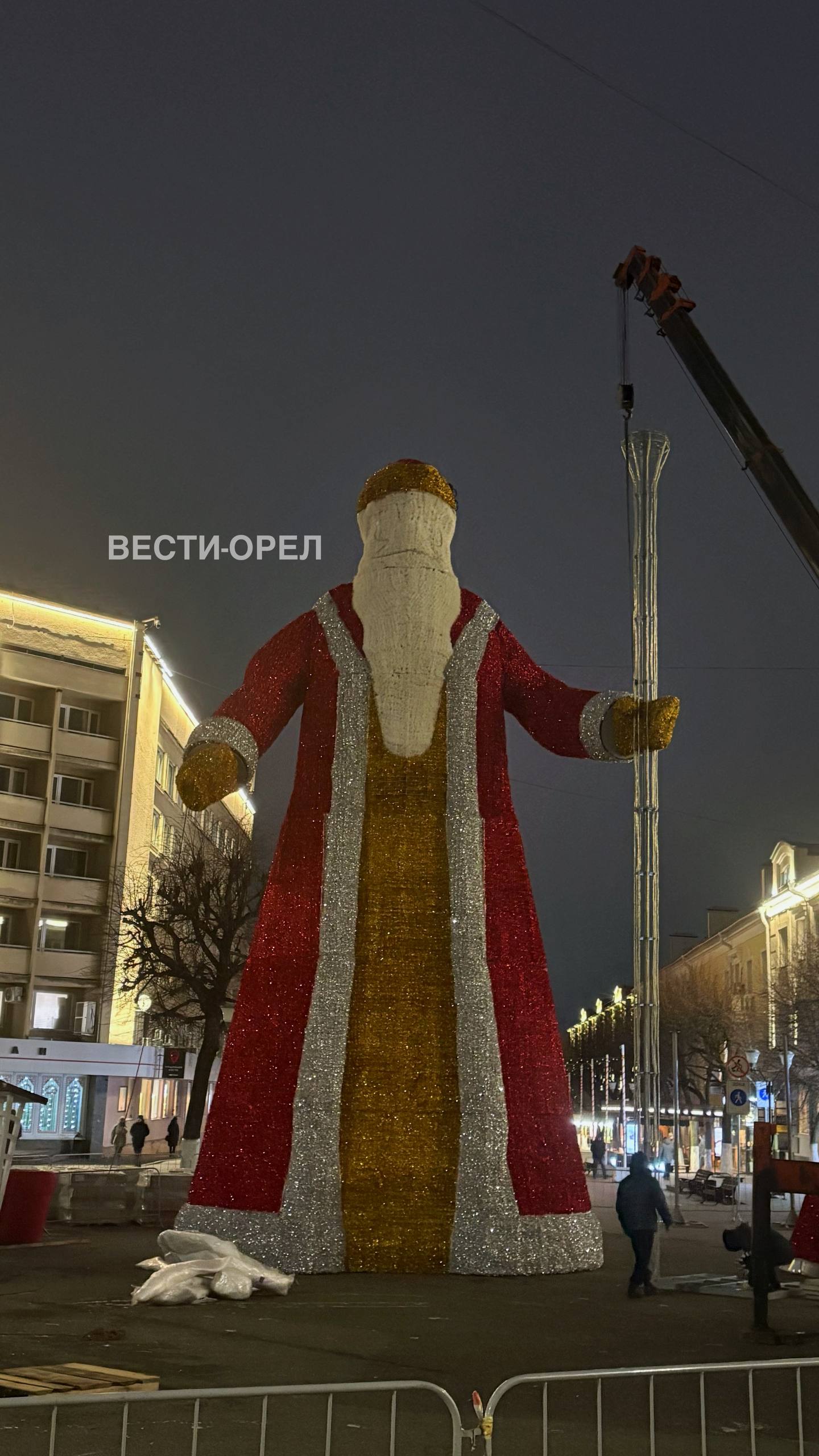 В Орле продолжается монтаж фигуры Деда Мороза на площади Ленина