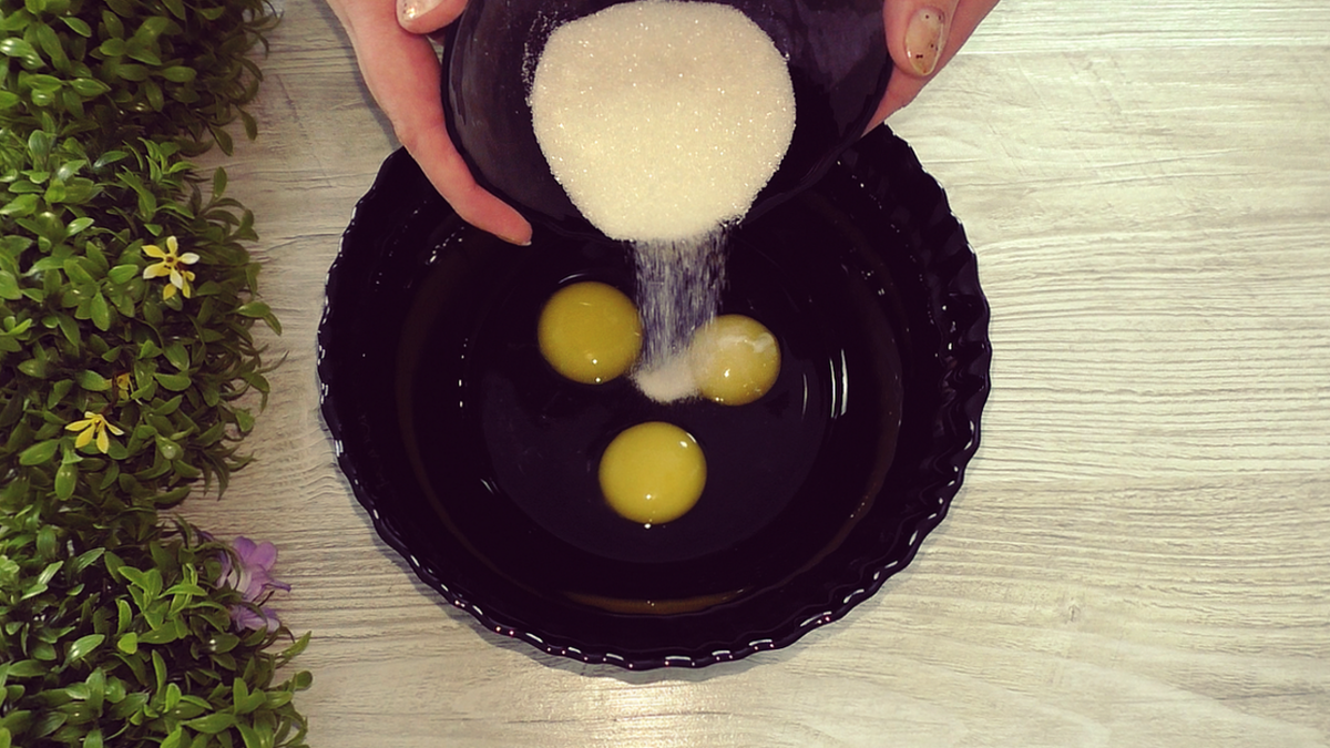 После того как масса станет однородной, настало время добавить просеянную муку и разрыхлитель. Важно добавлять муку постепенно: возможно, вам не понадобится использовать всё количество, так как тесто должно получиться по консистенции как жидкая сметана.