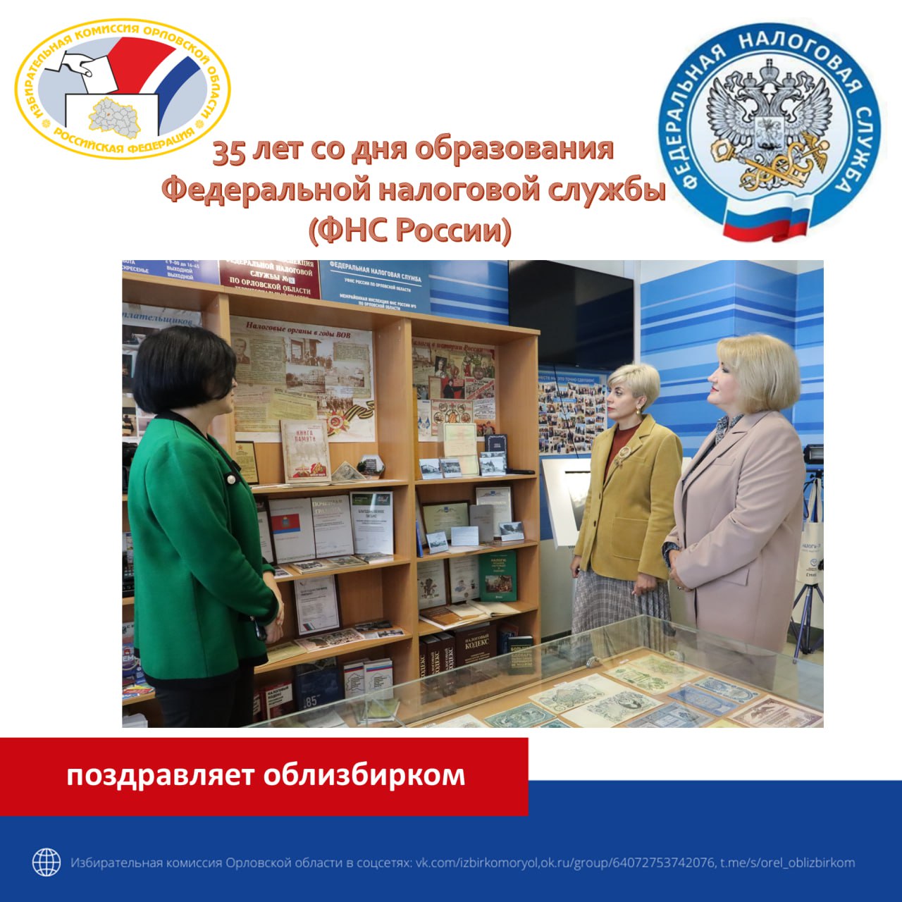 Избирательная комиссия Орловской области благодарит коллектив Управления Федеральной налоговой службы по Орловской области за многолетнее сотрудничество и поздравляет с профессиональным праздником!