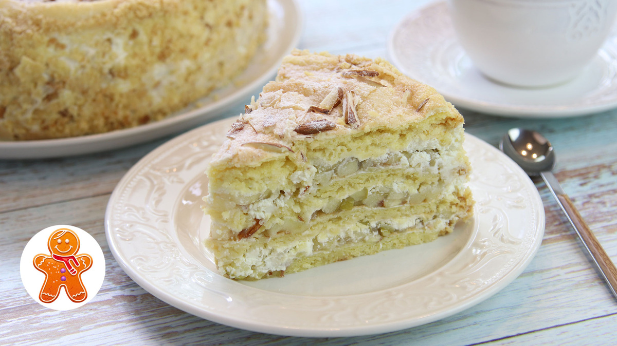 Этот торт — настоящая феерия вкусов. Сначала вас порадуют мягкие, воздушные коржи, пропитанные лучшими ингредиентами, затем наступит момент, когда яблочная прослойка освежит и удивит своей лёгкостью. Завершающая нота — нежный крем, который делает изделие поистине шедевром кулинарного искусства. Всего этот торт весит около 2,9 кг, что делает его идеальным для больших праздников.