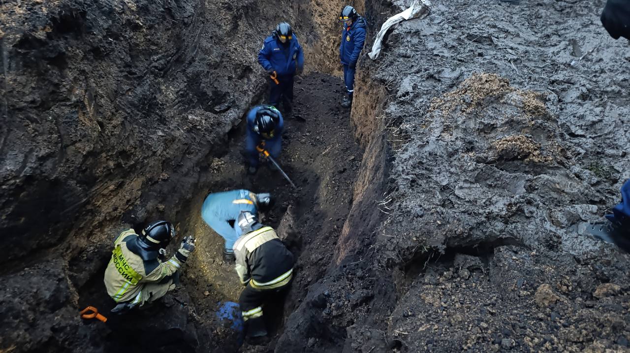 Более двух часов спасатели извлекали тело погибшего при обвале грунта в Орле
