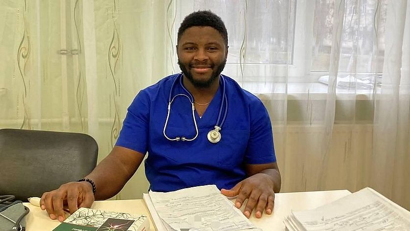 Кемла Фоба Ульрих Ромуал проходит ординатуру в неврологическом отделении. Молодому врачу помогают опытные коллеги во главе с заведующим Александром Дубининым