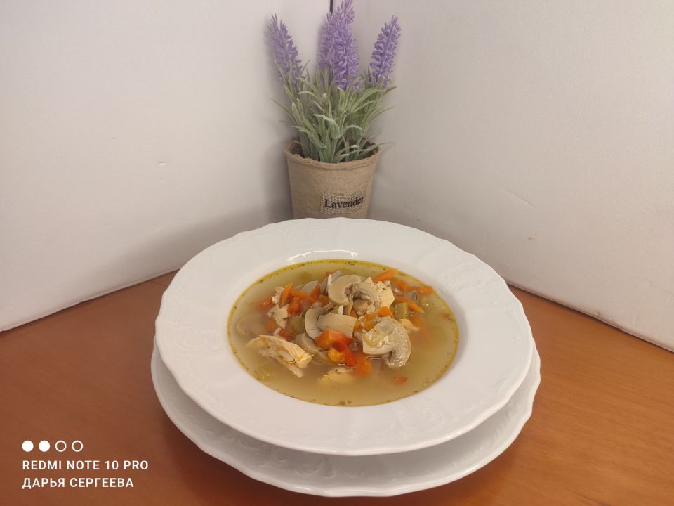 Собрав все ингредиенты, пора соединить их воедино. Готовая овощная смесь отправляется в процеженный бульон. Для тех, кто предпочитает плотные супы, можно добавить немного риса или пасты. Нежный вкус похлебки дополнит легкая нотка вина, подчеркивающая аромат всех ингредиентов. Достаточно лишь минут 10 на медленном огне, чтобы вкусы объединились, и всё готово.