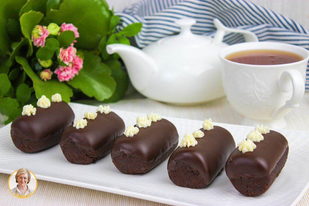 Приготовить шоколадную глазурь, растопив шоколад с маслом, и окунуть в неё верхушки пирожных. Украсить остатками крема, имитируя ростки картошки. Убрать в холодильник на 1-2 часа для полного застывания. Пирожные готовы к подаче на стол к чашке чая или кофе!