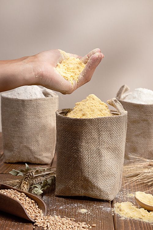 - Кукурузная мука: богатая витаминами группы B, железом и калием, она поддерживает здоровье сердца и костей.