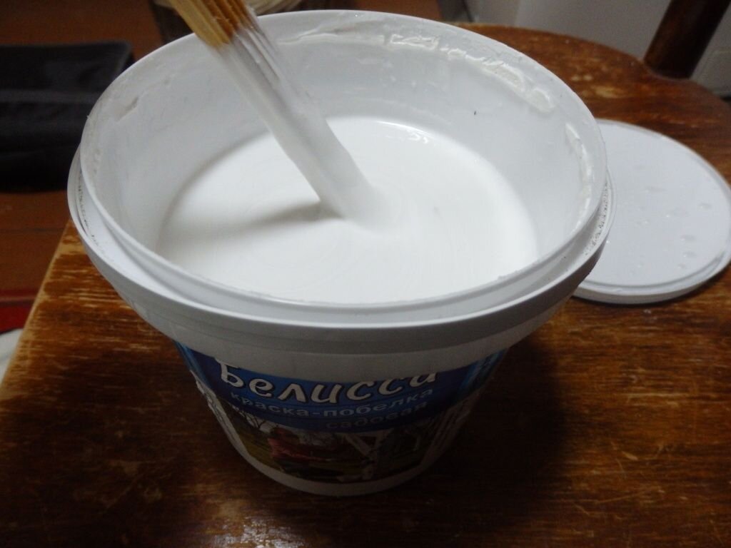 - На основе извести: 2 кг извести, 10 л воды, 300 г медного купороса и 2-3 столовые ложки муки для клея.