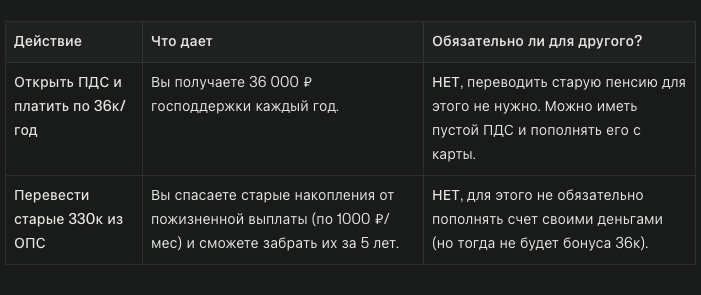- Только господдержка: Если ваша цель - получить пособие в 36 тысяч, стоит открыть ПДС и внести новые взносы. При этом перевод старых средств из ОПС необязателен.