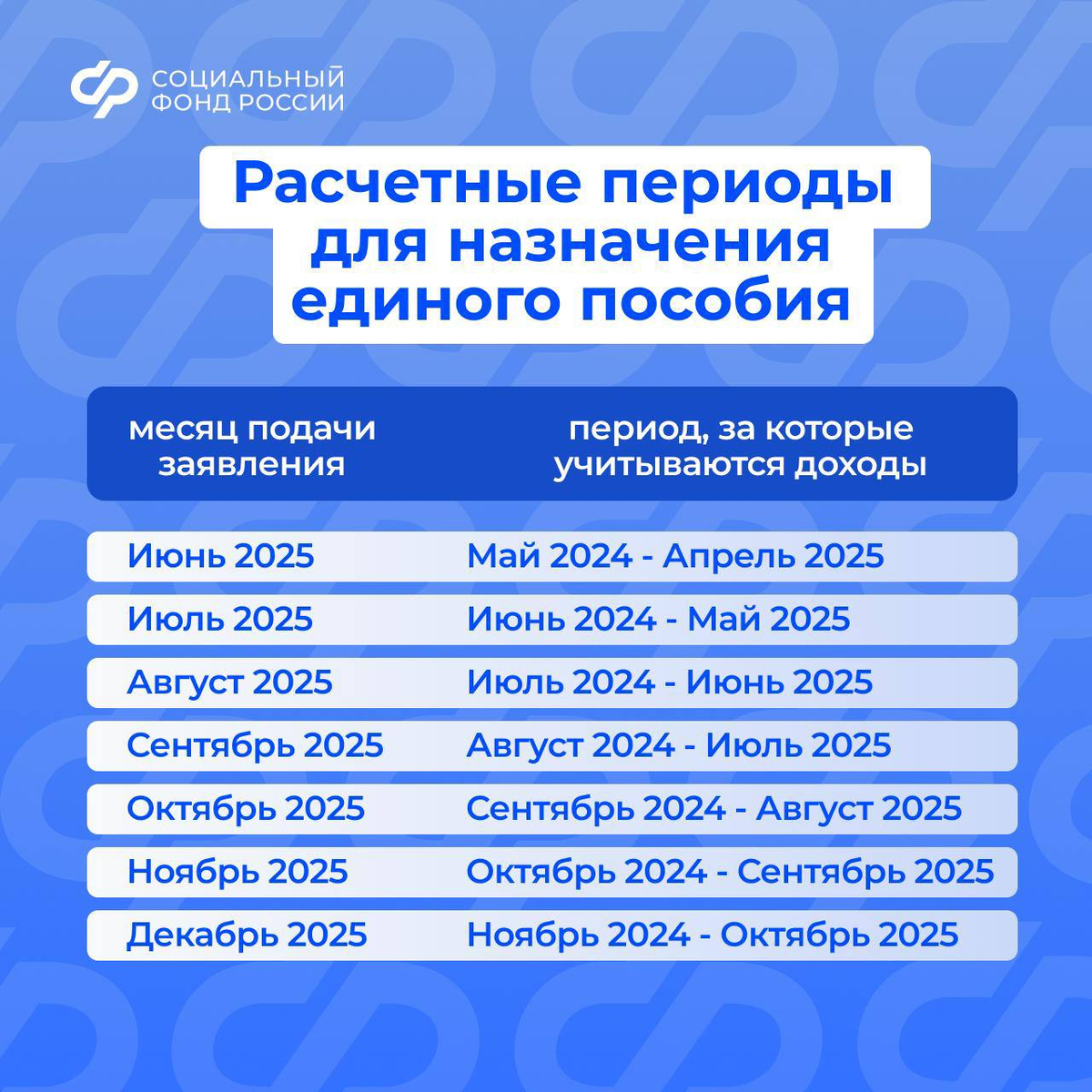 - Если заявление подано в июне 2025 года, учитываются доходы с мая 2024 по апрель 2025;
