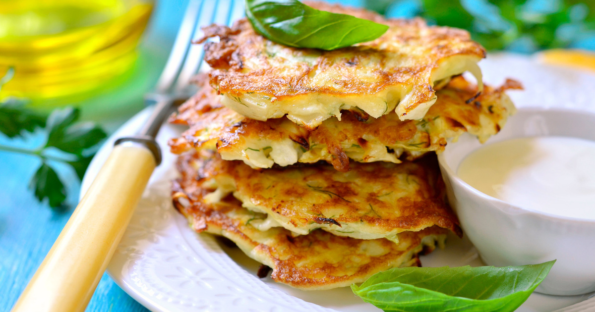 5. Украшение. Готовые оладьи рекомендуется выкладывать на бумажное полотенце, чтобы избавиться от лишнего масла, и подавать горячими с соусами и свежими овощами.