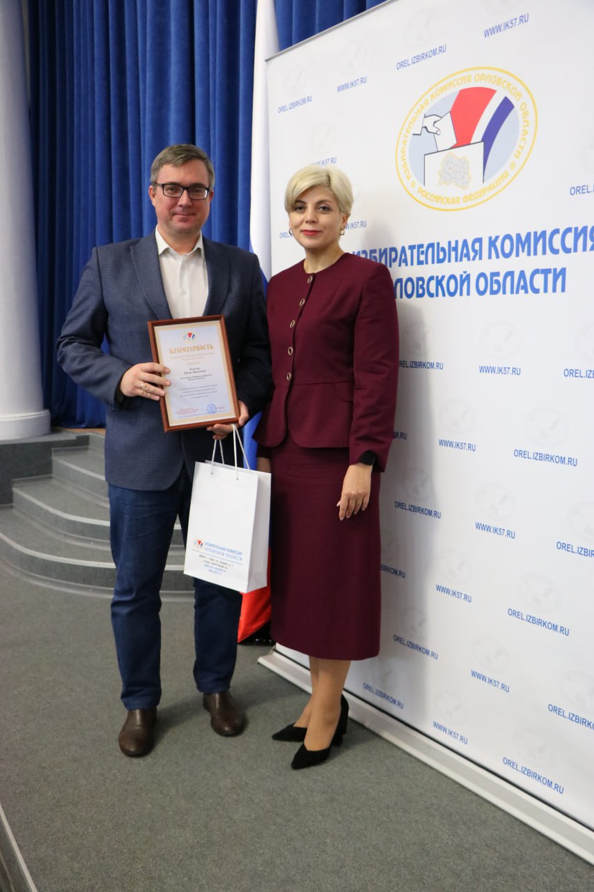 На 96 заседании Избирательной комиссии Орловской области состоялась церемония награждения представителей организаций и лиц, оказывающих содействие и существенную помощь в проведении мероприятий, направленных на повышение правовой культуры молодых и будущих избирателей Орловской области.
