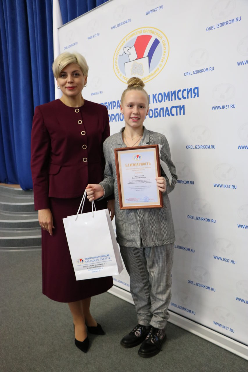 За оказание содействия и существенную помощь в проведении молодежного электорального проекта «Писатель – Время – Выбор», благодарность председателя Избирательной комиссии Орловской области объявлена сотрудникам общеобразовательных учреждений города Орла и области, учреждений среднего профессионального образования, сотрудникам орловских музеев, Орловской областной специальной библиотеке для слепых имени А.Г. Абашкина в лице директора Евгения Борисова.