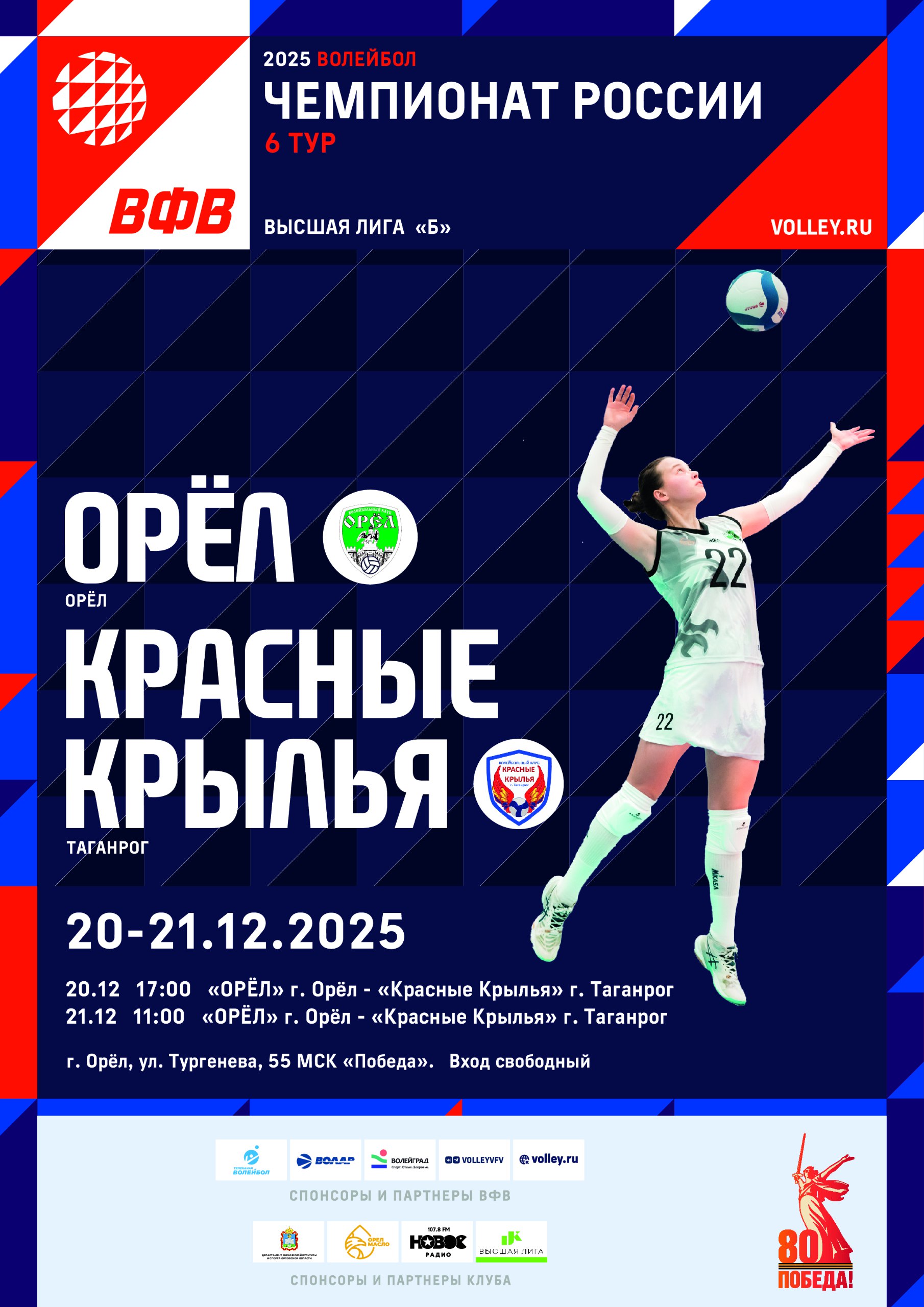 20 и 21 декабря на площадке спорткомплекса «Победа» (ул. Тургенева, 55) состоятся матчи в рамках Чемпионата России Высшей лиги «Б». Орловчанки сыграют с соперницами из Таганрога – коллективом «Красные крылья».