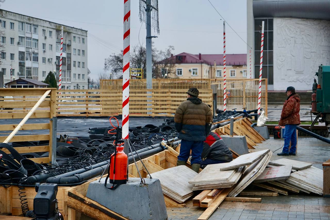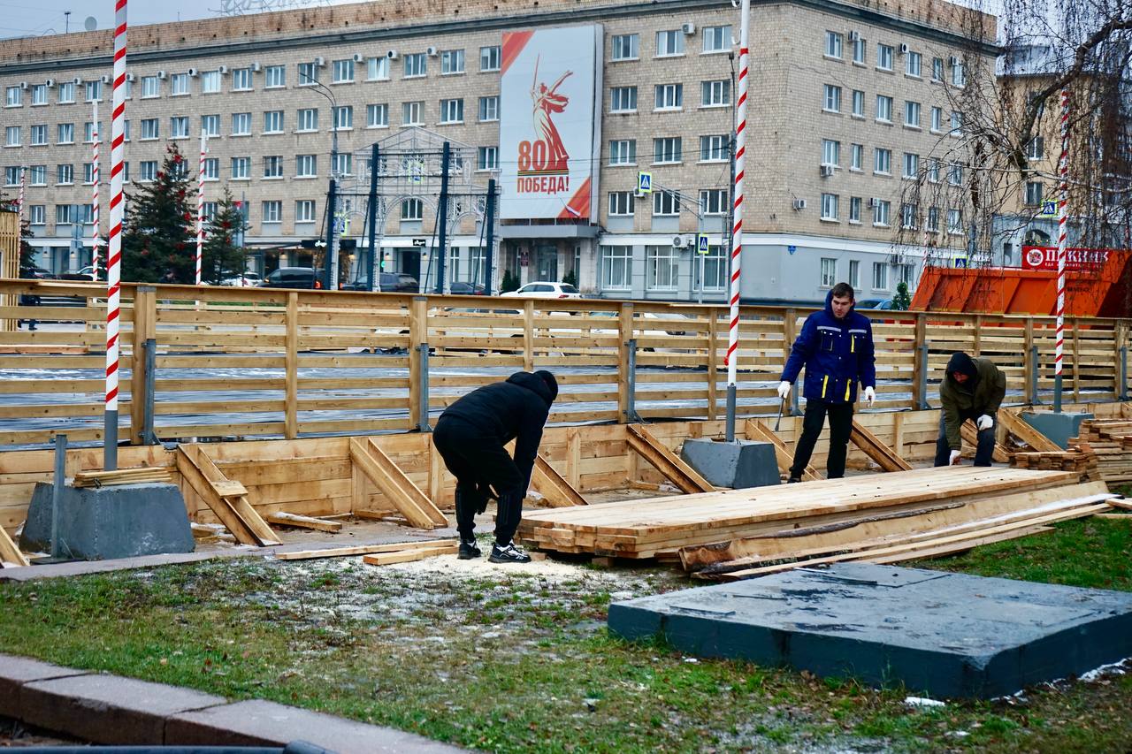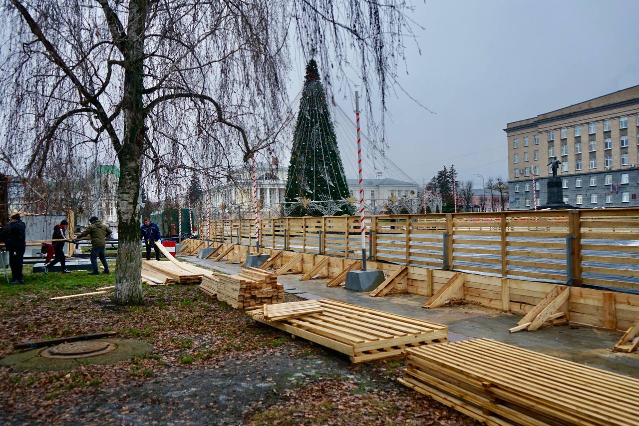 На площади Ленина продолжается монтаж главного городского катка