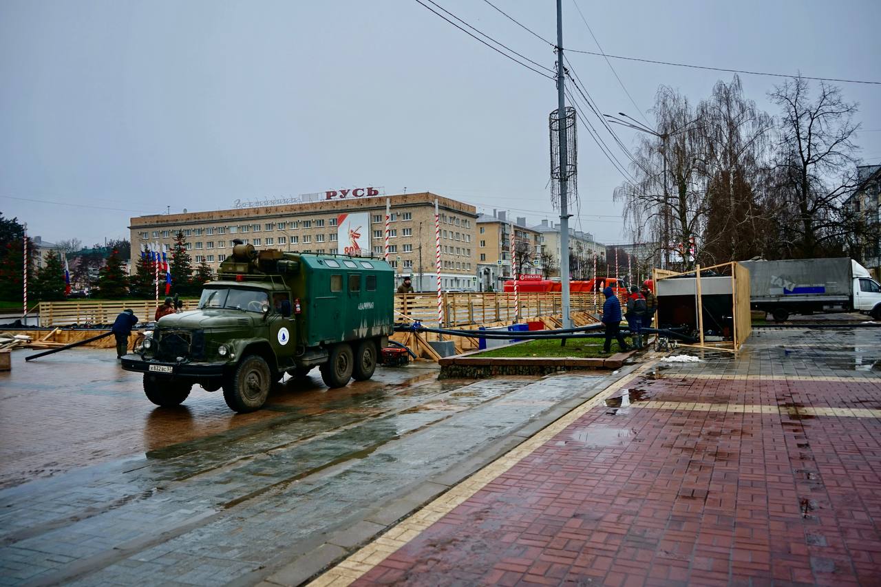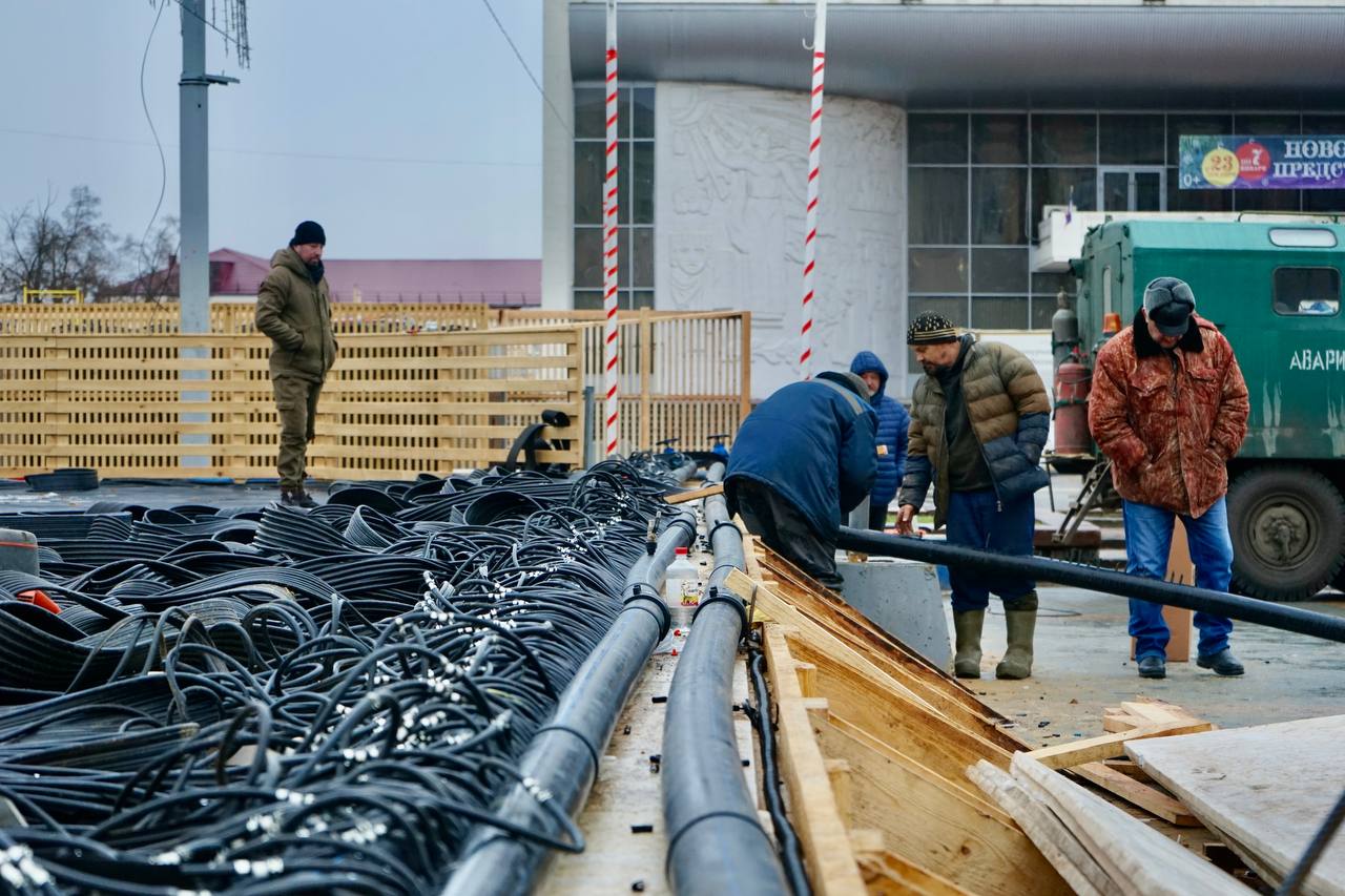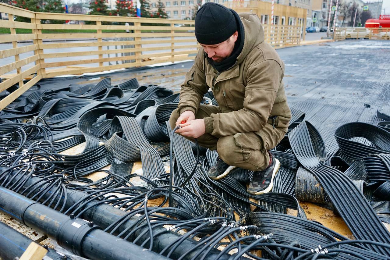 На площади Ленина продолжается монтаж главного городского катка