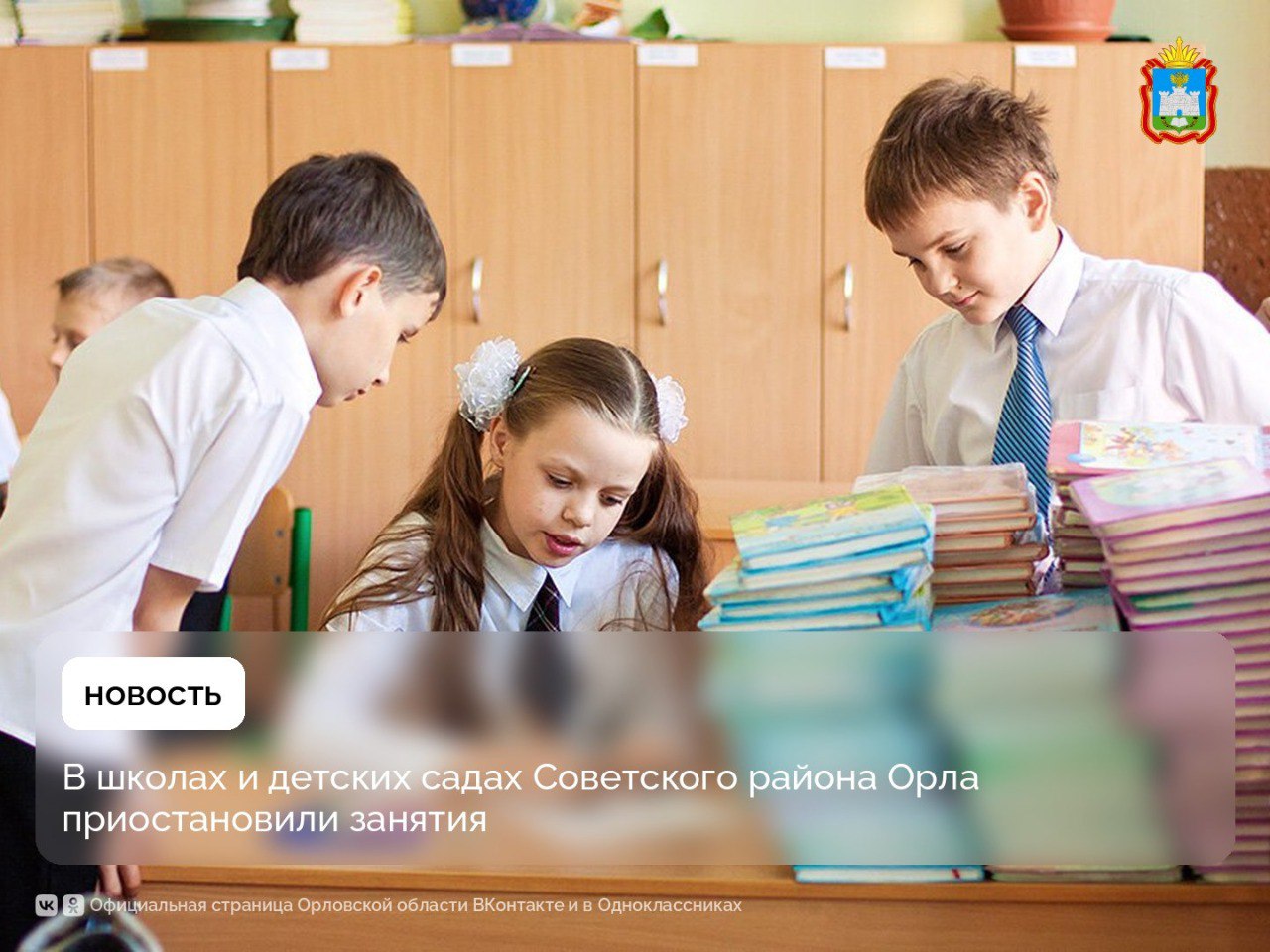 «В связи с временными ограничениями подачи тепла и горячей воды принято решение сегодня приостановить занятия в образовательных организациях и дошкольных образовательных учреждениях, расположенных в Советском районе города Орла», - проинформировал глава региона.
