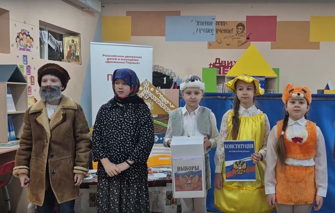 Будущие избиратели в творческих постановках рассказывают о правах и обязанностях граждан Российской Федерации, закрепленных в Конституции России, важности выборов.