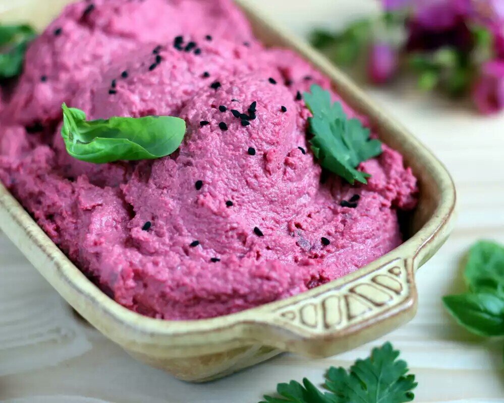 - Свеклу отварить или запечь, затем натереть или измельчить с чесноком и измельченными орехами.