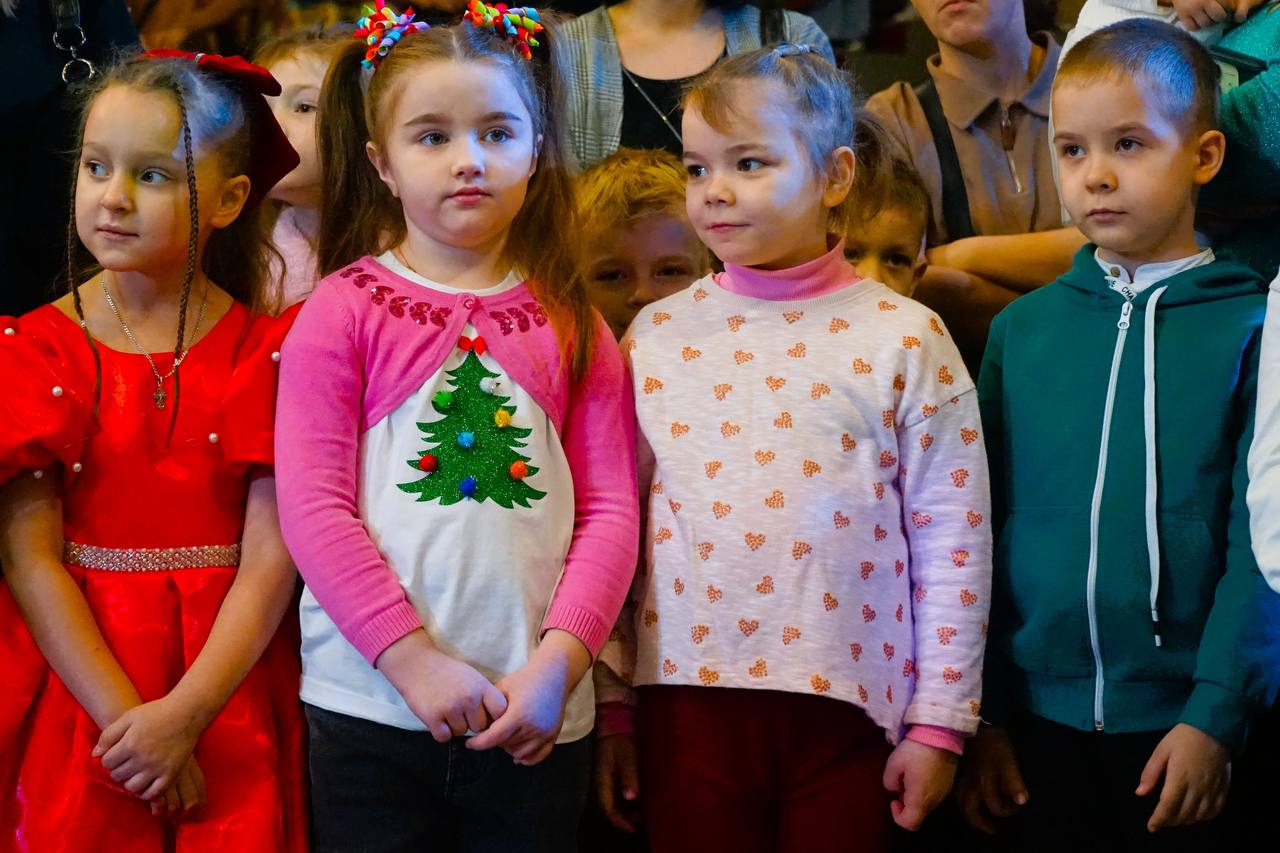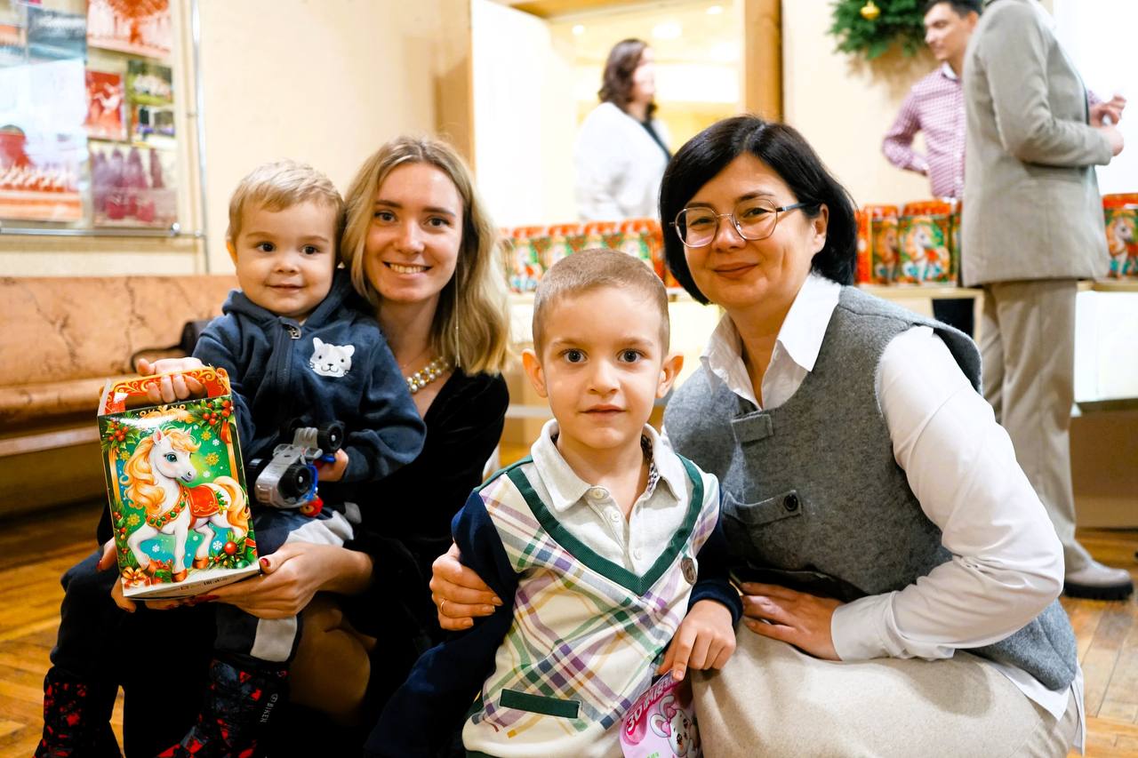 Для детей была подготовлена яркая интермедия у новогодней ёлки с главными героями праздника — Дедом Морозом и Снегурочкой.