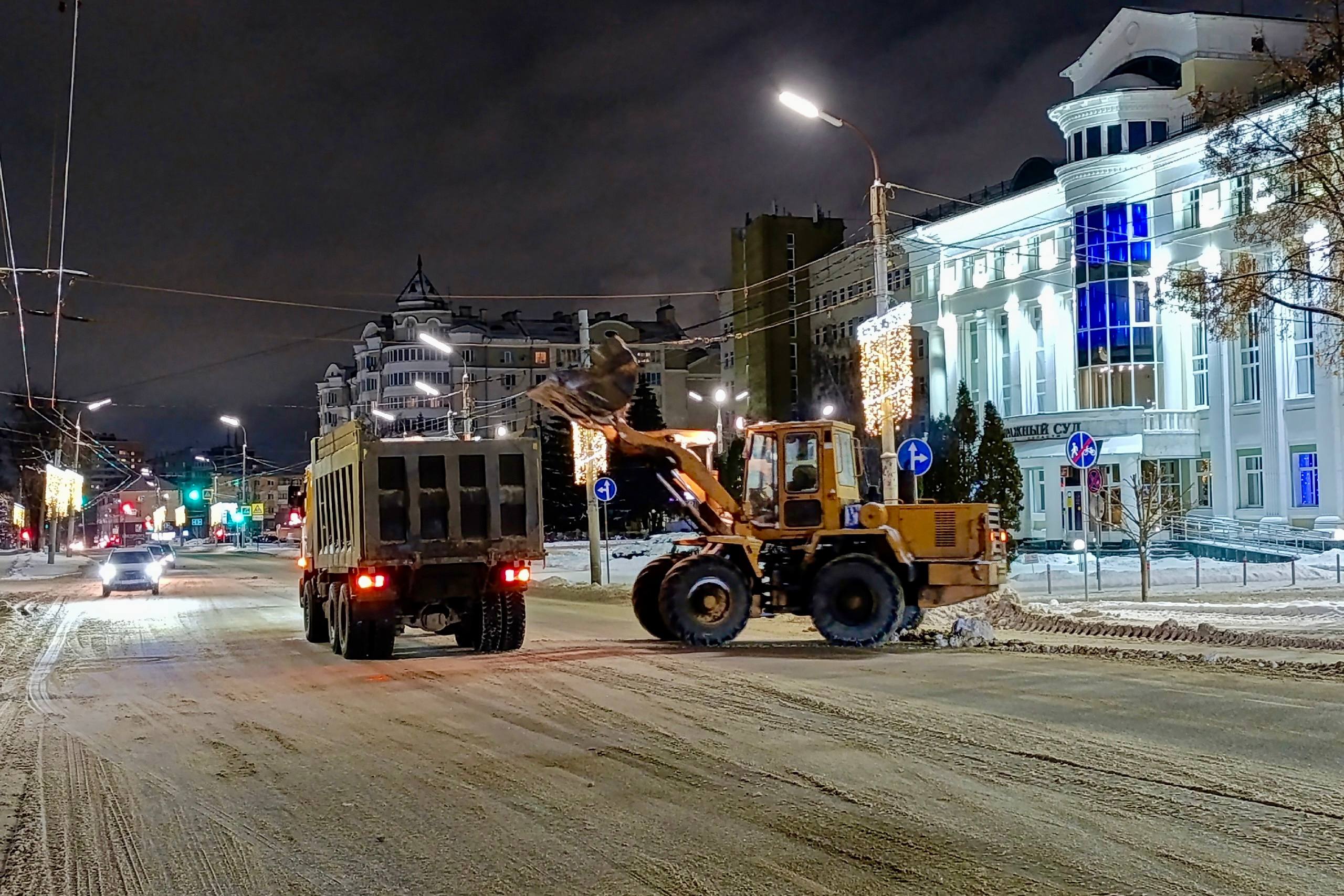 Уборка в Орле ведётся круглосуточно. В ход идёт специализированная техника: снегоуборочные машины, самосвалы, погрузчики.