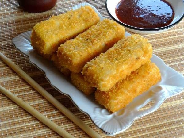 Далее в глубокой тарелке взбивают яйцо, добавляя соевый соус, паприку и черный перец, чтобы создать необычный вкус. Каждый брусочек тофу сначала обмакивают в этой яично-соевой смеси, а затем обваривают в хрустящих панировочных хлопьях, создавая тем самым идеальный ненавязчивый корочку.