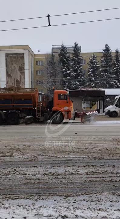 Техника "Спецавтобазы" чистит дороги Орла от снега.