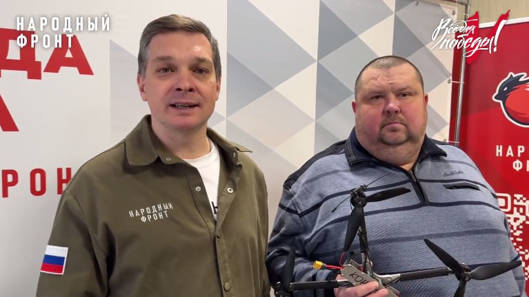 Орловский Народный фронт передал музею взорванный двигатель от вражеской ракеты, сбитый беспилотник, погашенный РЭБом квадрокоптер, гильзы, маскировочную сетку противника.