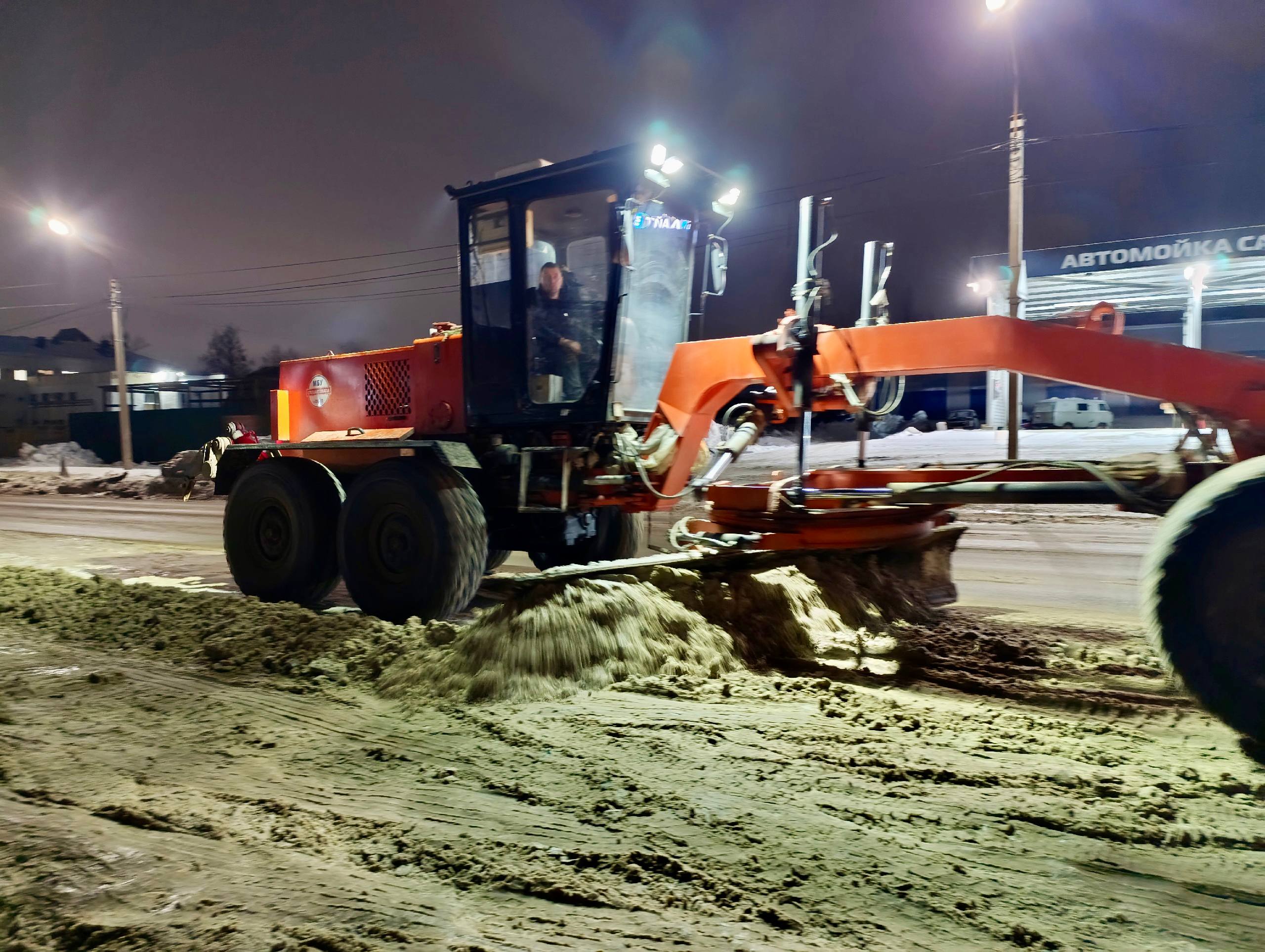 Так, сегодня ночью проводились работы по расширению проезжей части Новосильского шоссе, ул. Металлургов, ул. Полесской. «Спецавтобаза» расчищала тротуары по пер. Ремонтному и ул. Тульской.