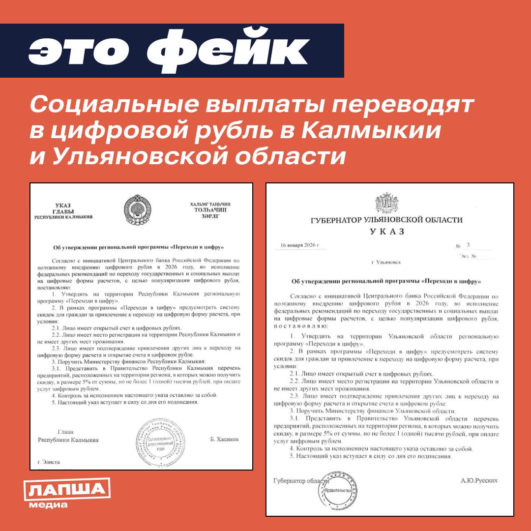 Это очередная фальшивка, связанная с российской цифровой валютой. Существование подобных документов уже опровергли в Минфине Калмыкии и ЦУР Ульяновской области. Их нет и на официальных ресурах регионов.