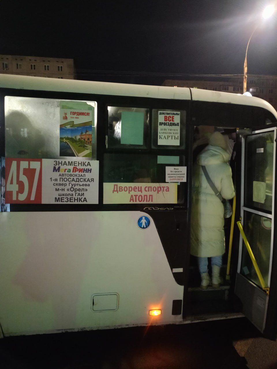 Сегодня утром, понедельник. Подошла 457-я, переполненная, мы сесть не смогли.
