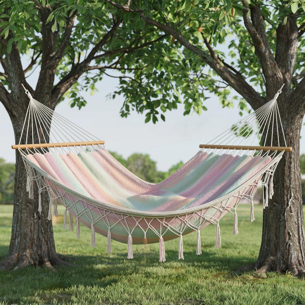 Создание надежных креплений — важный этап на пути к созданию безопасного гамака. Следует подготовить четыре полосы прочной ткани длиной около 30-40 см, которые будут служить для укрепления краев ковра. Каждая полоса должна быть подшита, чтобы края не осыпались, и далее пришита к коротким сторонам ковра. Для подвешивания подойдут прочные веревки диаметром от 8 до 10 мм, которые легко связываются в надежные петли. Опоры для гамака — это два крепких дерева с толстым стволом или специальные стойки, что гарантирует безопасность конструкции. Правильная высота подвеса — на уровне груди, с легким провисом для комфорта.