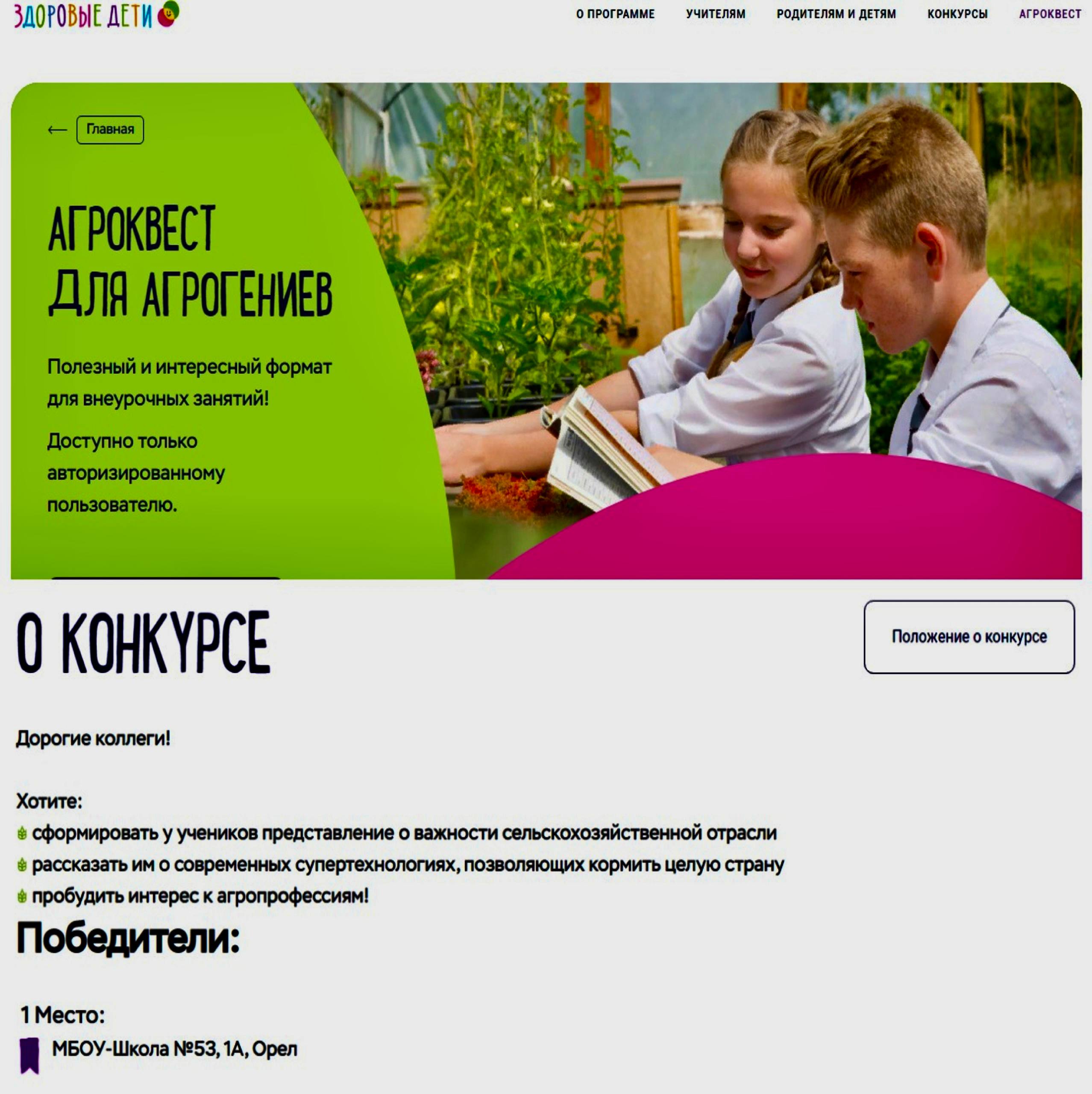 Первоклассники школы № 53 города Орла стали победителями Всероссийского конкурса «Агроквест для агрогениев», который проходит в рамках программы «Разговор о правильном питании». Для ребят это не просто конкурс — это первое большое достижение и уверенный шаг к новым знаниям.