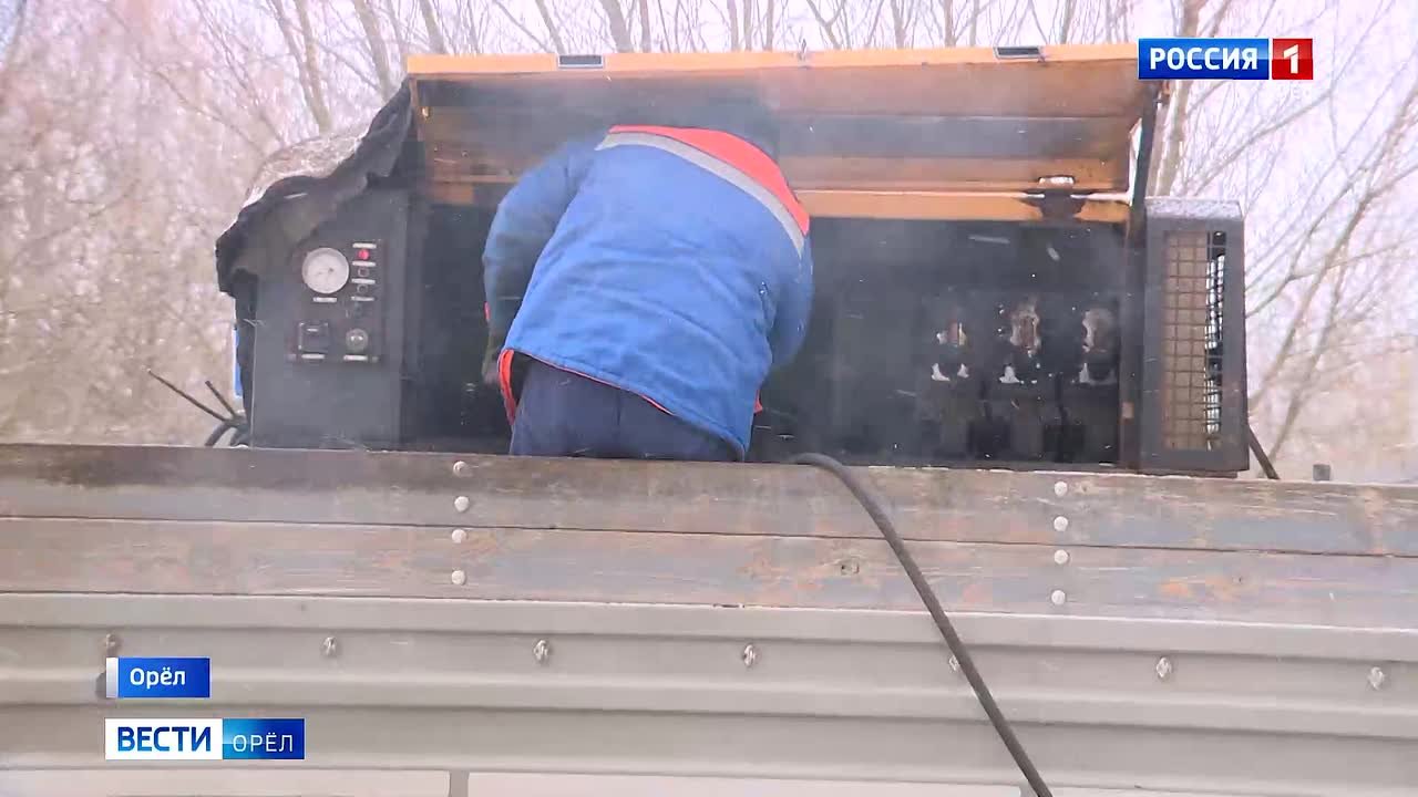 Орловские дорожники продолжают латать ямы, несмотря на морозы