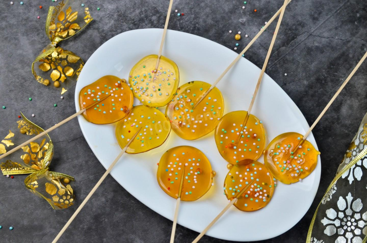 Для леденцов на палочке вставьте шпажки сразу после разливания.