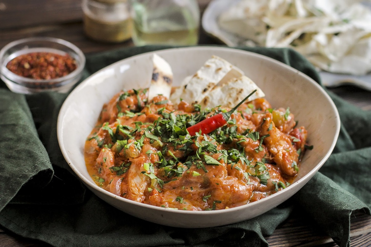 Шаг 4: К овощам добавить индейку и бульон, довести до кипения и варить 5-7 минут на слабом огне. Добавить сыр и дождаться его полного растворения. Пока мясо готовится, разогреть другую сковороду. Тортилью разрезать на полоски шириной 3-4 см и обжаривать до хрустящей корочки 4-6 минут. Украсить готовую энчиладу мелко нарезанной петрушкой и подавать с тортильей.