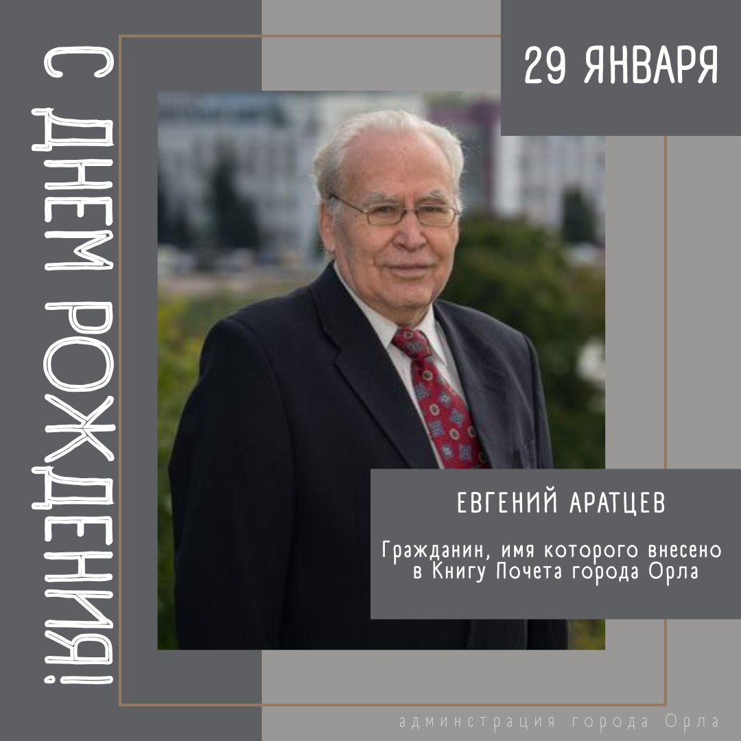 Сегодня свой День Рождения отмечает Евгений Александрович Аратцев – гражданин, чьё имя внесено в Книгу Почета Орла