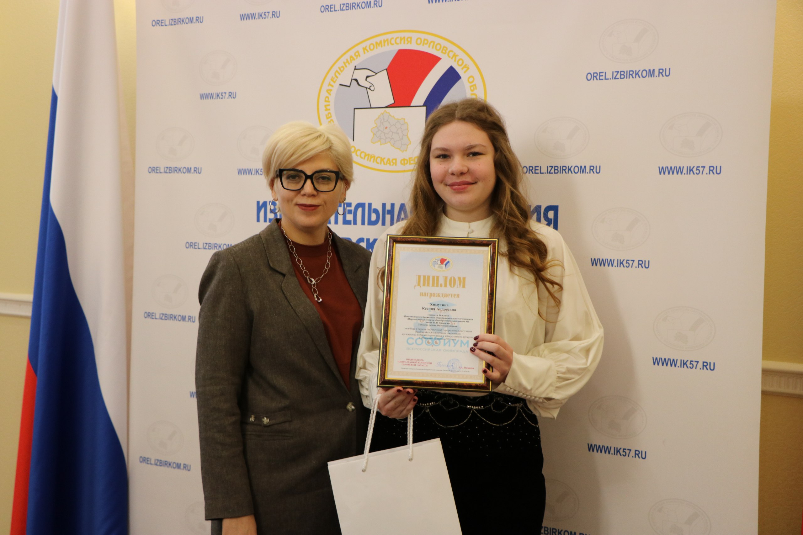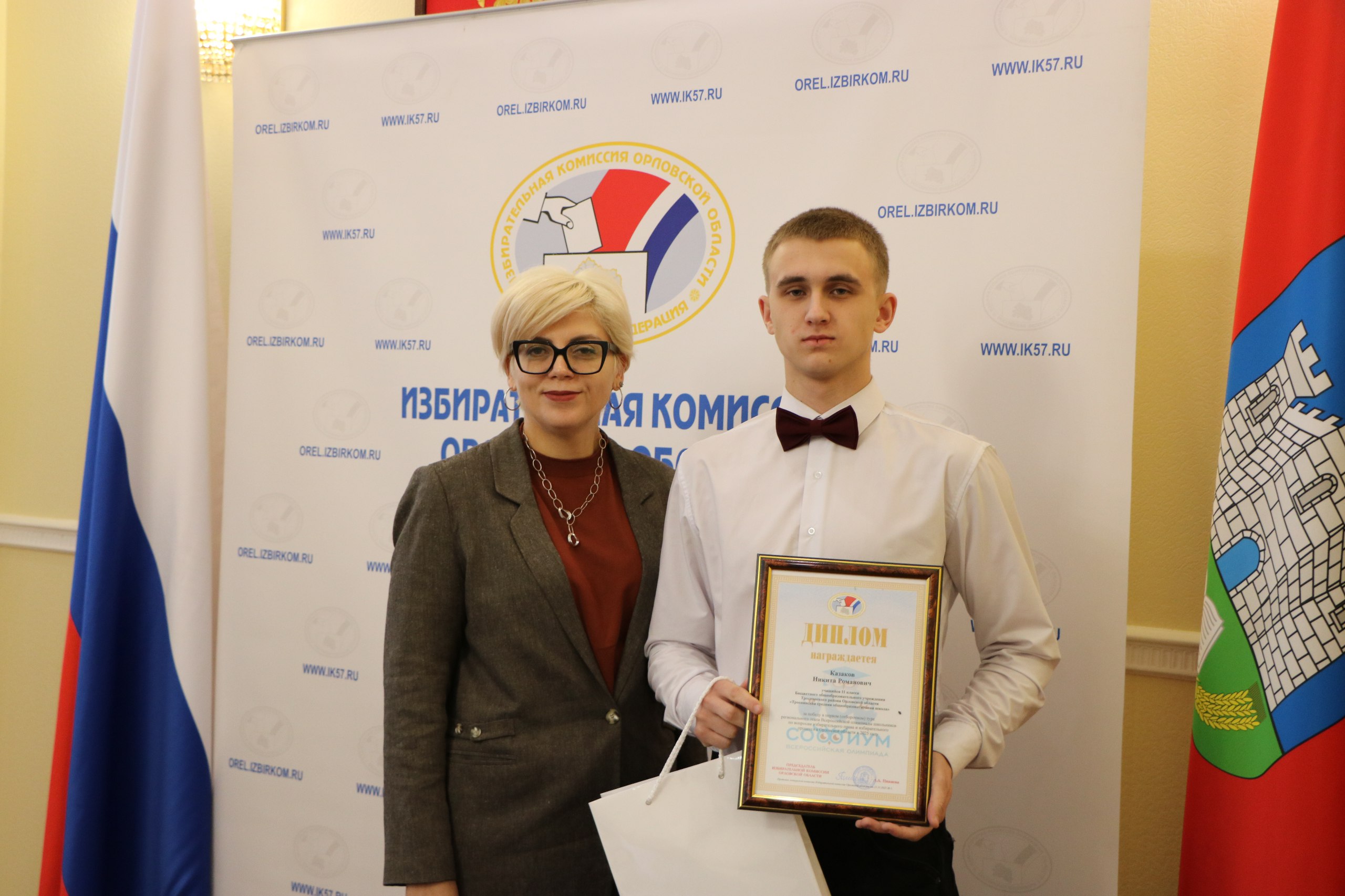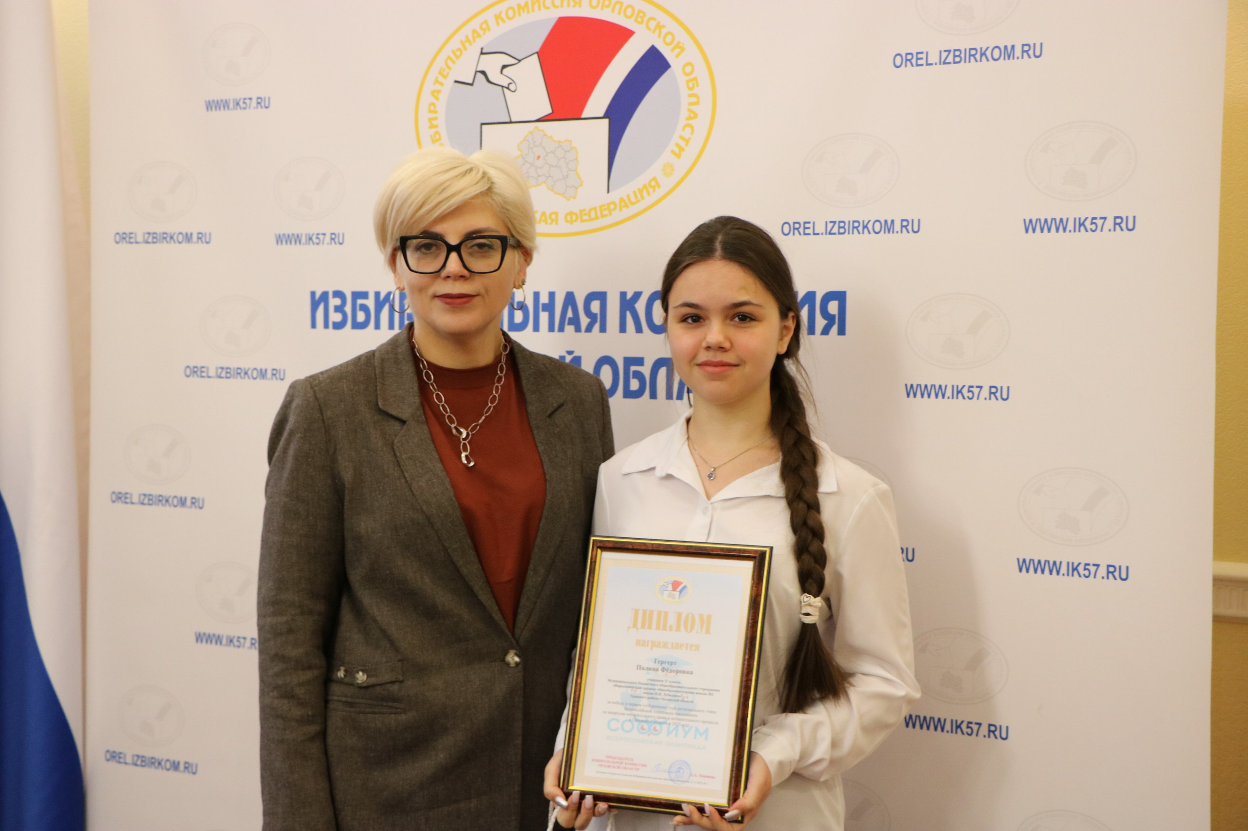Председатель Избирательной комиссии Орловской области Лилия Пиняева вручила ребятам заслуженные награды и поблагодарила за целеустремленность и высокую электоральную грамотность.