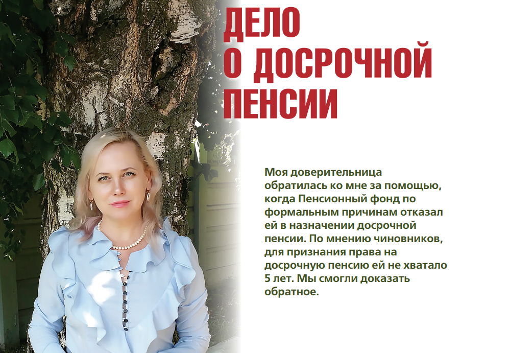 Позже Наталья вышла замуж и переехала в город, где начала работать медсестрой в районной больнице. В конце 2017 года, как только она подсчитала свой льготный стаж, она обратилась в Пенсионный фонд для назначения досрочной пенсии. Однако получила отказ, так как чиновники не учли её стаж работы в ФАПе и на курсах повышения квалификации.