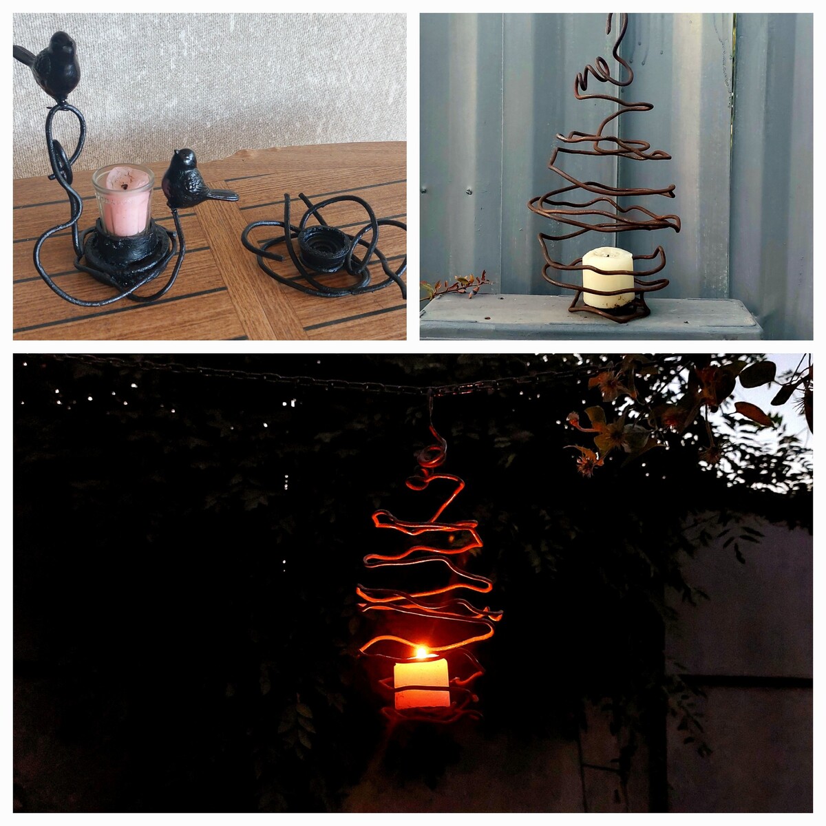 Изготовление основы подсвечников зависит от имеющихся материалов. В наличии множество огрызков и мотков проволоки, которые когда-то были использованы на участке или сняты со старого забора.