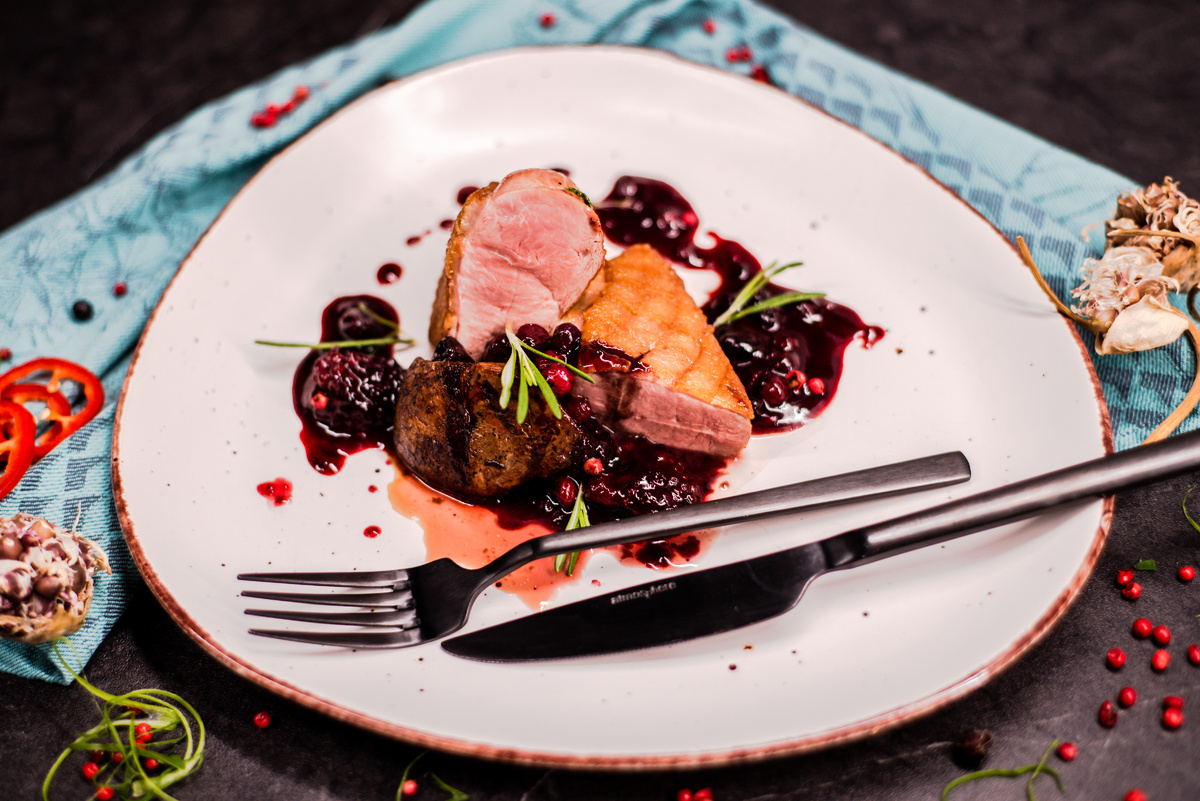 Что касается утиных грудок, то они всегда выглядят чрезвычайно празднично и одновременно не требуют особых хлопот. Главное — уделить немного времени и внимания. Если кожу надрезать ромбиками и обжарить правильно, она станет хрустящей, а само мясо останется красивым и сочным. Именно за этот контраст свои популярность у поваров.