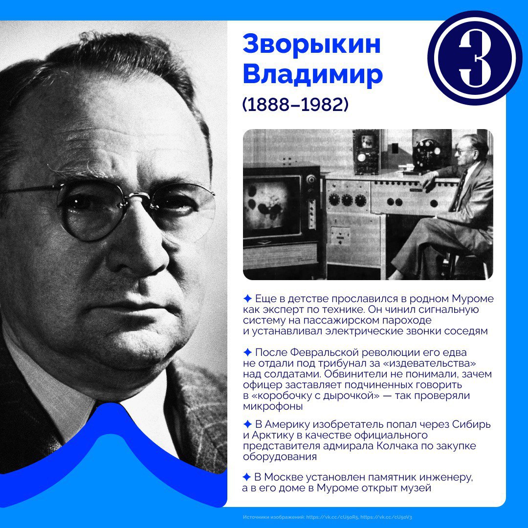 Уроженец Мурома навсегда вписал свое имя в историю техники, совершив революцию в передаче изображения. Студент Петербургского технологического института под руководством профессора Розинга увлекся идеей «дальновидения», хотя большинство ученых считали электронный метод бесперспективным.